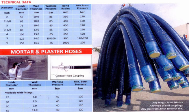 TMPL is proud to be asspciated with atop German company for distribution of their range of concrete pump & Mortar Horse. These hoses are suitable for use with hydraulic conveying pupms at highest pressure rates & is used for conveying construction material.