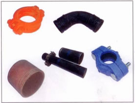 The clamps are of SG Iron Castings with 2 bolt design for quick fixing with a rubber sealing to give a leak proof joint.